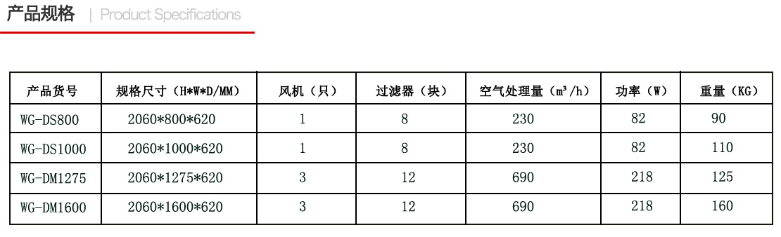 7.高效过滤系统:按照颗粒大小选择排列分布,遵循ASTM标准,有效针对酸性气体和有机气体,吸附能力强,针对粒子采用高效HEPA过滤器,对大于0.3um的粒子,过滤效率达99.995%。