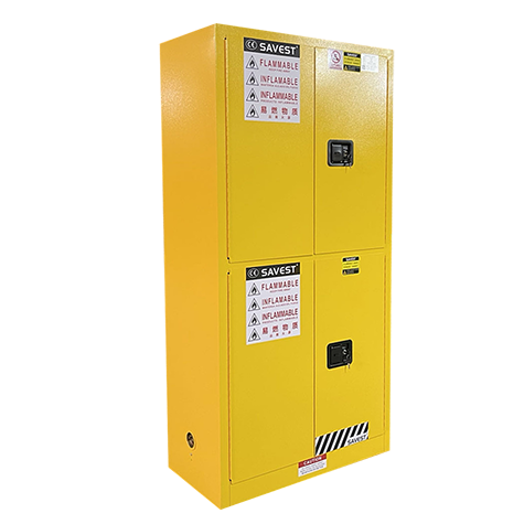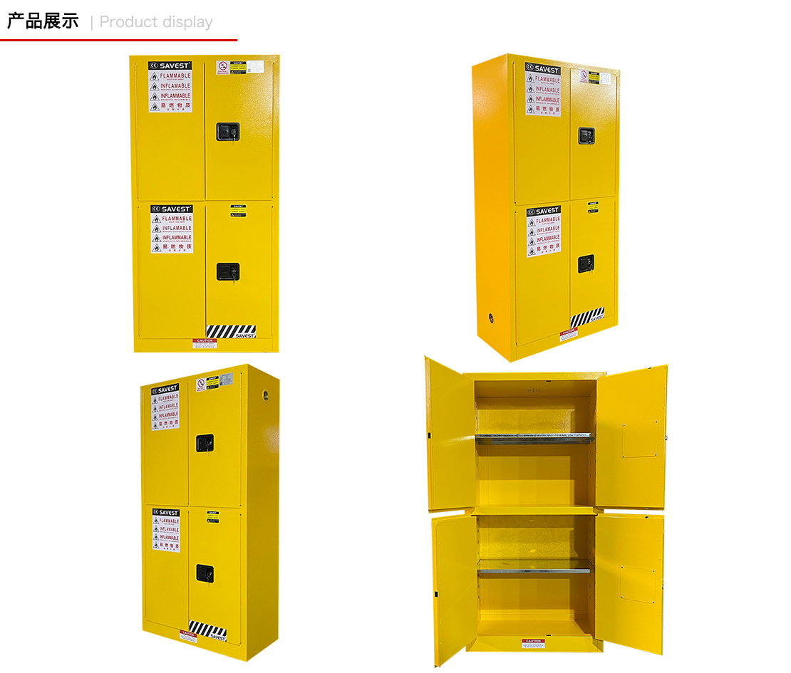1. SAVEST易燃液体防火安全柜由双层优质冷轧钢板通过点焊接构造,两层钢板之间相隔有38mm的防火阻燃层;