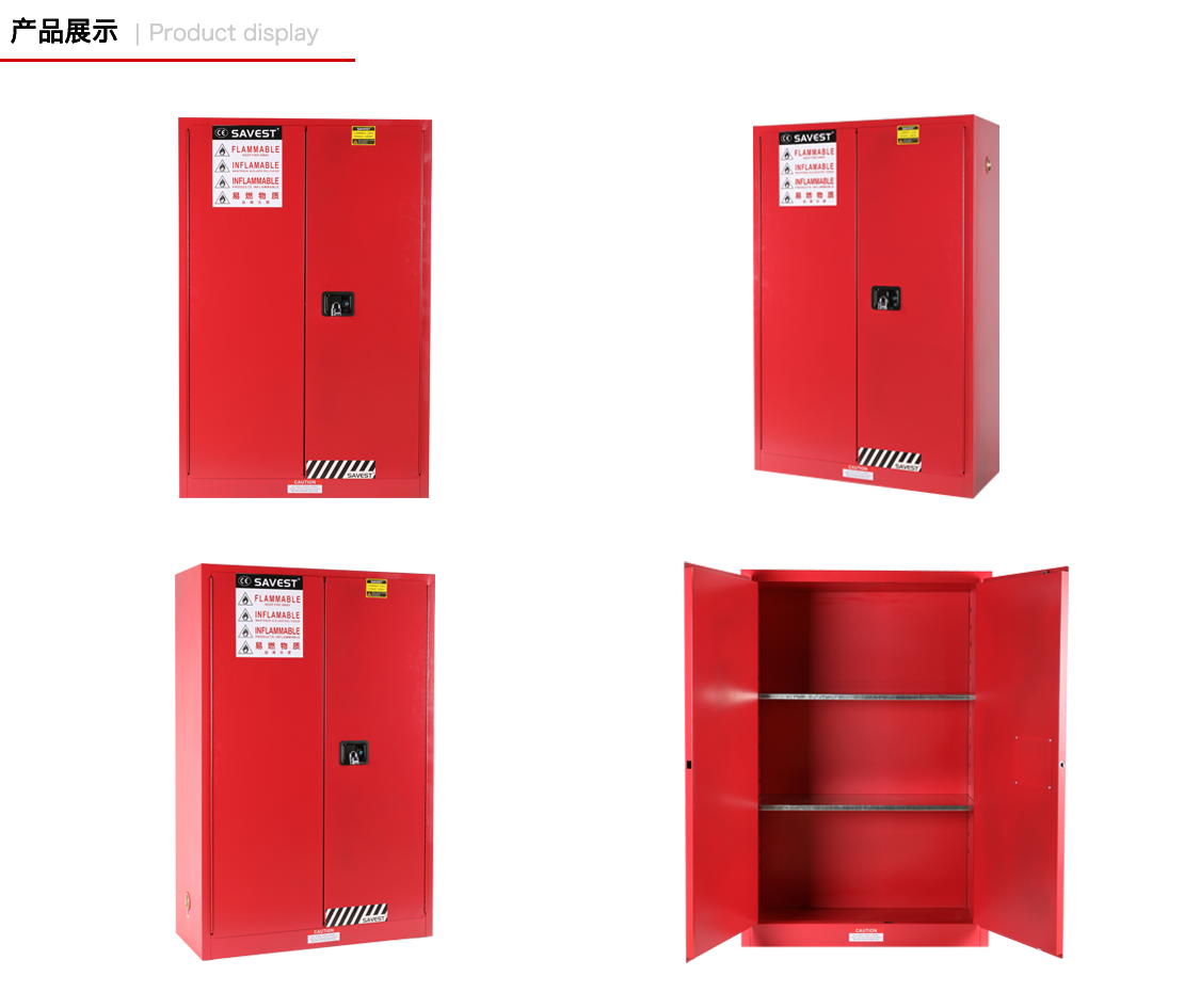 1. SAVEST可燃液体防火安全柜由双层优质冷轧钢板通过点焊接构造,两层钢板之间相隔有38mm的防火阻燃层;