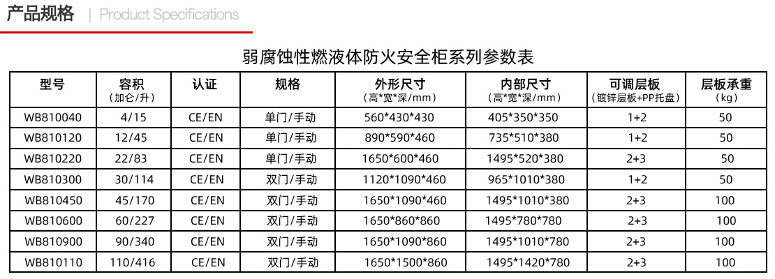 12. 弱腐蚀性液体防火安全柜符合OSHA 29 CFR 1910.106和NFPA CODE30标准;