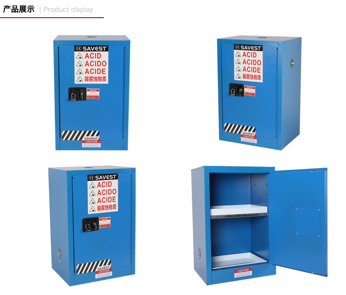 13. 弱腐蚀性液体防火安全柜专用于存储弱腐蚀性液体,适用于院校实验室,科研院所等。