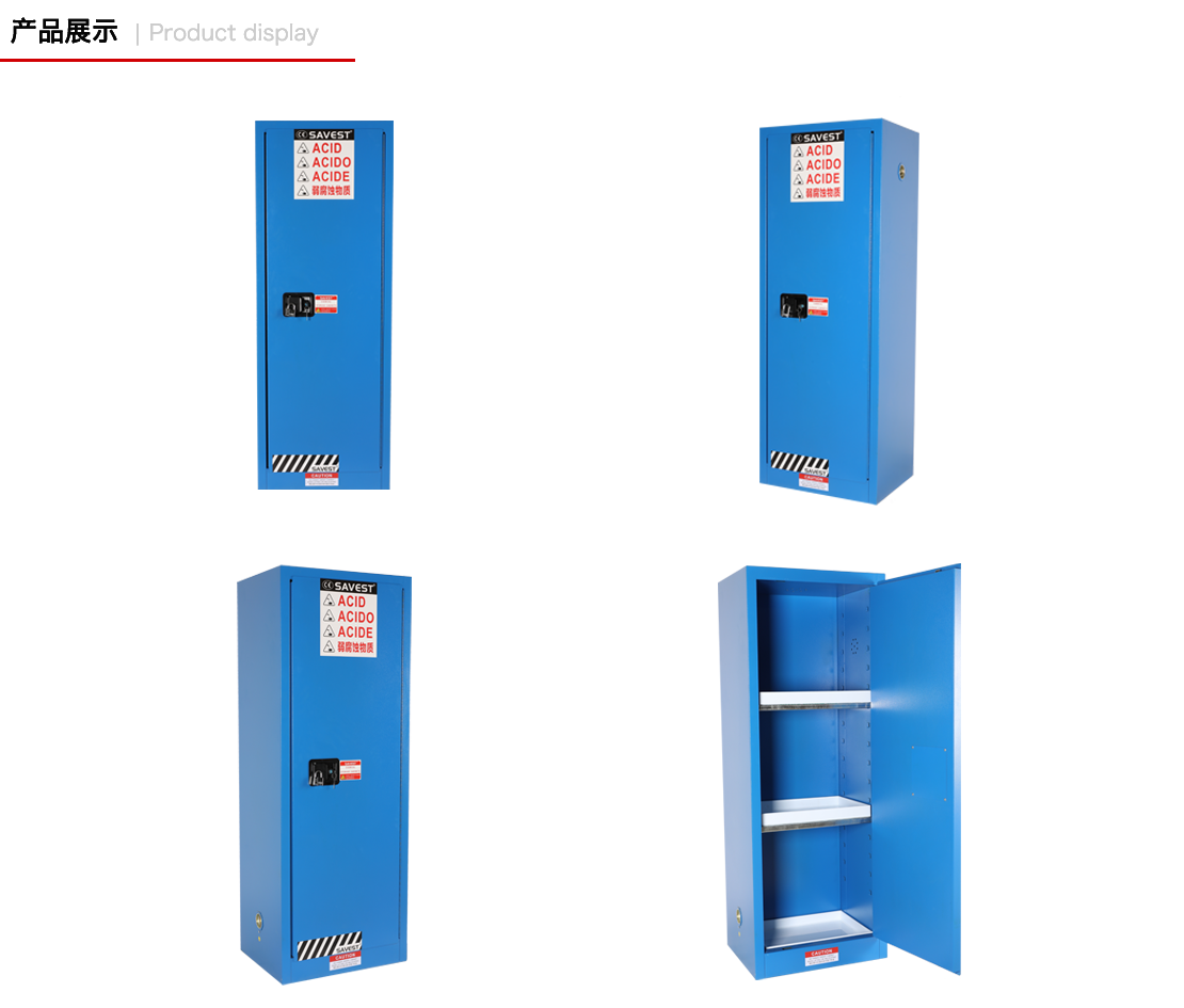 1. SAVEST弱腐蚀性液体防火安全柜由双层优质冷轧钢板通过点焊接构造,两层钢板之间相隔有38mm的防火阻燃层;