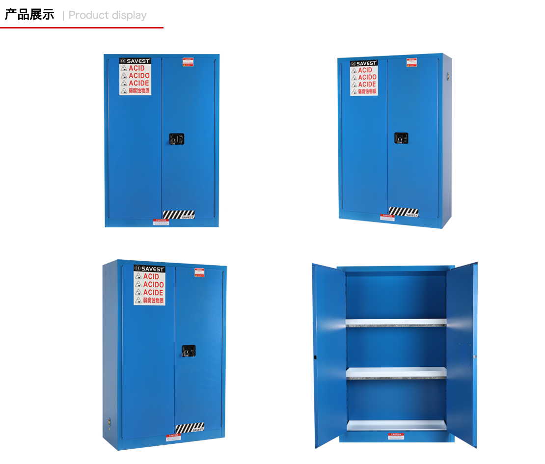 1. SAVEST弱腐蚀性液体防火安全柜由双层优质冷轧钢板通过点焊接构造,两层钢板之间相隔有38mm的防火阻燃层;