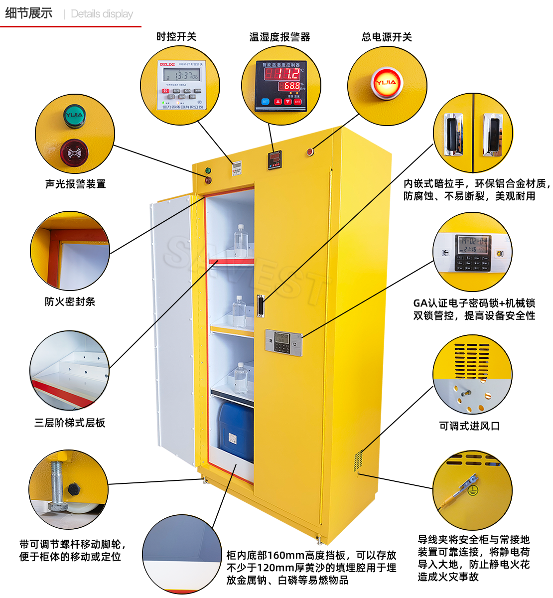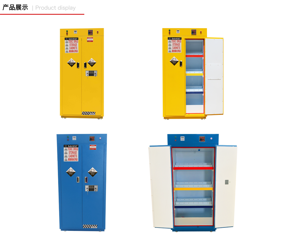 1. SAVEST易燃品毒害品柜由优质冷轧钢板折弯点焊制成;
