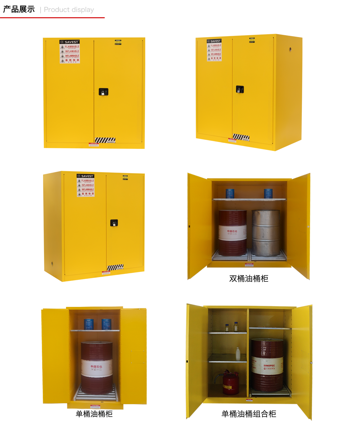 1. SAVEST油桶柜由双层优质冷轧钢板通过点焊接构造,两层钢板之间相隔有38mm的防火阻燃层;