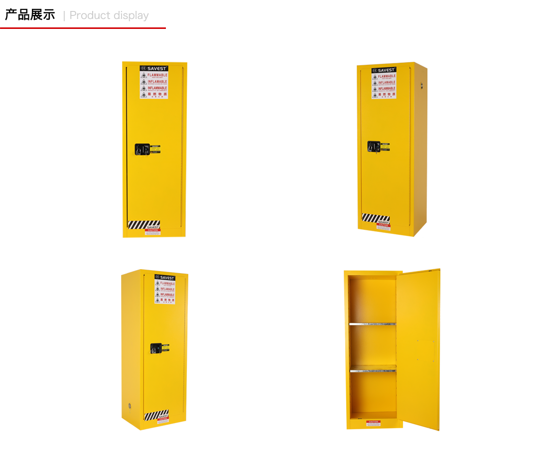 12. 易燃液体防火安全柜广泛应用于存储易燃液体(低,中闪点液体,液体闪点<37.8℃),降低火灾风险,保障生命财产安全。